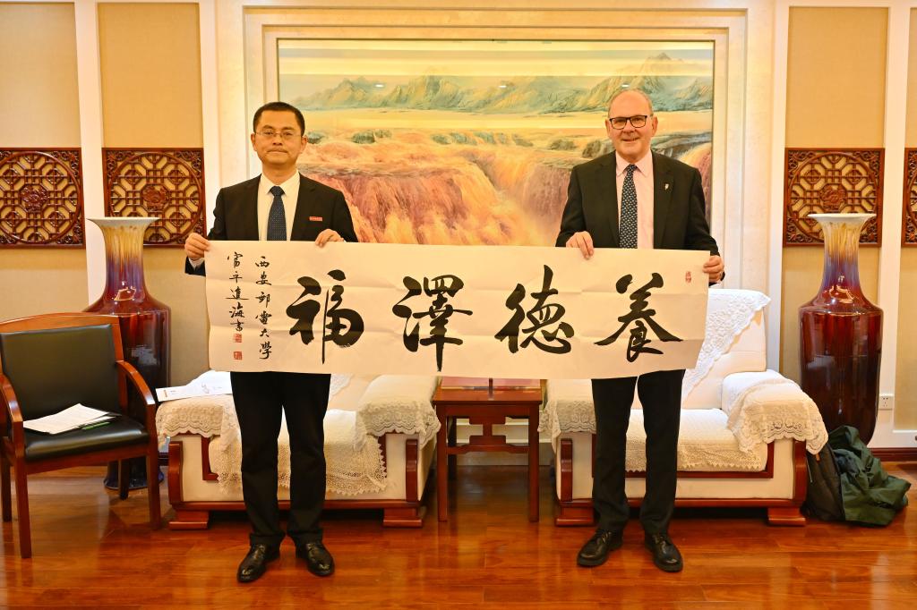 马宁表示,西安兼具深厚历史底蕴与强劲现代活力,既是古丝绸之路的起点,也是全国第四个“综合性科学中心和科技创新中心”建设城市。目前,西安已集聚大量电子信息领域企业,为两校合作培养信息技术人才提供独特的文化滋养、丰富的产业平台资源,以及多元化的实践渠道。两校在学科布局与办学特色上高度契合,信息领域学科实力突出,且双方都拥有成熟的国际化合作办学经验,期待以此次会面共同推动信息工程专业中外合作办学项目通过教育部评估。