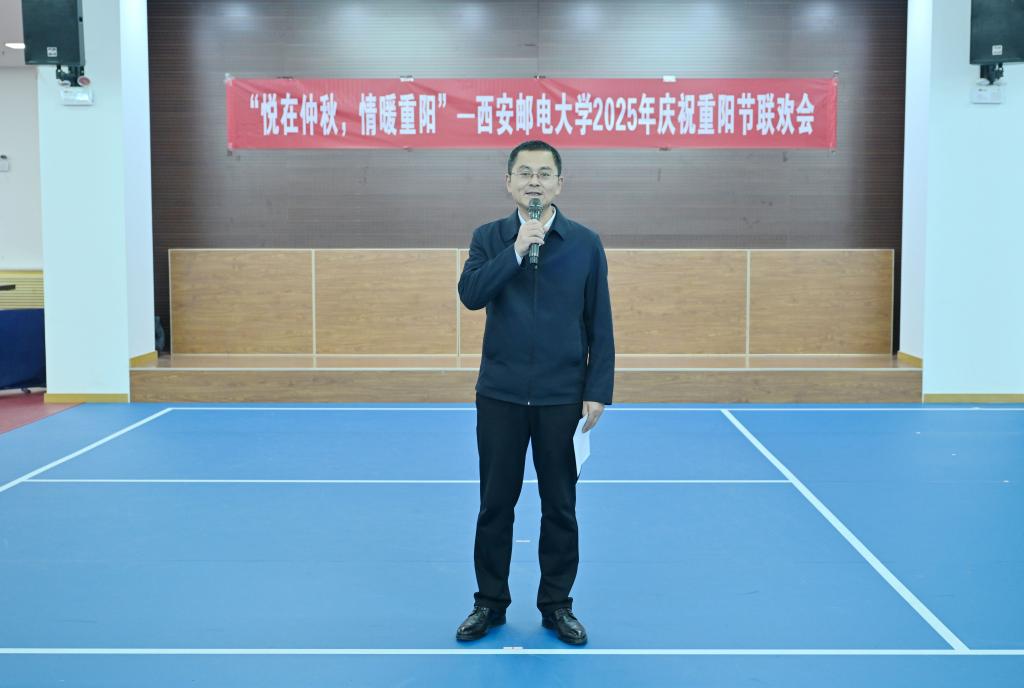 本网讯(通讯员 孙磊)10月29日下午,为弘扬中华民族尊老敬老的传统美德,丰富离退休教工精神文化生活,学校在长安校区教职工活动中心举办“悦在仲秋 情暖重阳”离退休教职工重阳节联欢会。校党委书记马宁出席联欢会并致辞。校党委副书记安增旺、学校原党委书记崔智林、学校原副校长薛顺根,党校办、校工会等相关部门负责人及离退休教职工100余人欢聚一堂、共庆佳节。