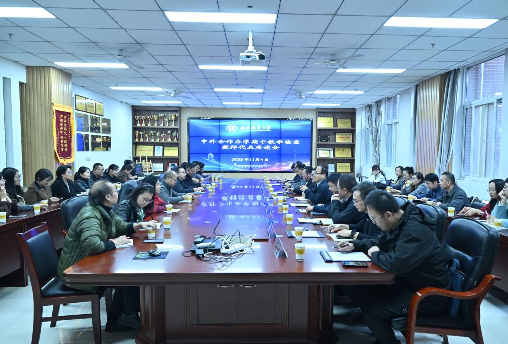 本网讯(通讯员 袁晓惠)11月4日下午,学校在长安校区东区教学楼FZ227会议室召开中外合作办学专业期中教学教师座谈会。校党委书记马宁、副校长楼旭明出席会议。教务处、国际合作与交流处、教师发展中心等部门负责人,国际信息工程学院、电子工程学院、集成电路学院相关负责人及任课教师代表参加座谈会。会议由副校长韩江卫主持。