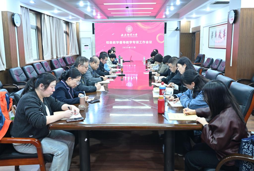 本网讯(通讯员 李丽萍)11月5日,为全面推进学校优质本科教育教学质量文化建设,深入落实“一次就做对”的教育教学质量文化理念,推动本科教育教学质量持续攀升,我校在长安校区办公楼第一会议室召开校级教学督导教学专项工作会议。副校长楼旭明出席会议并讲话,教务处、教师发展中心负责人,校级教学督导组全体成员及教学质量监控与评估办公室全体成员参加会议。会议由教学质量监控与评估办公室主任孙爱晶主持。