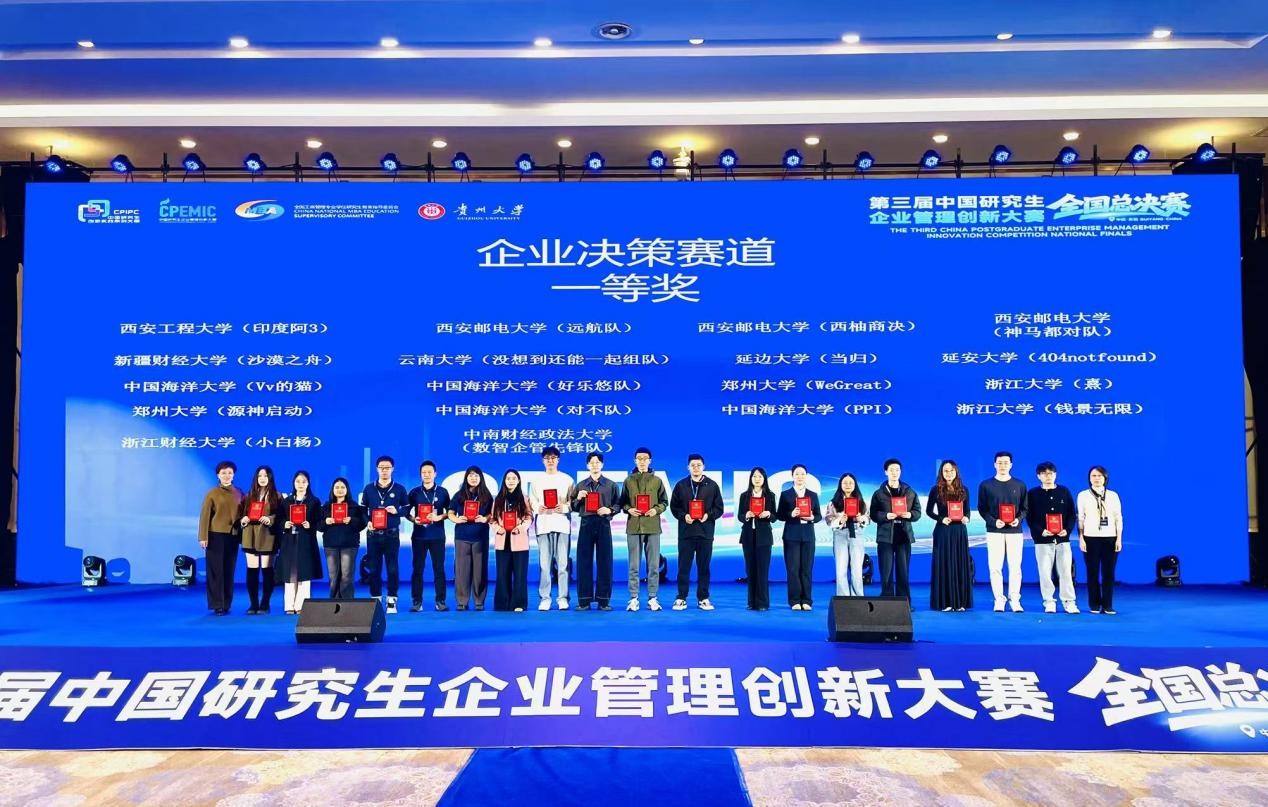 本网讯(通讯员 郭敏 刘晓娴)近日,由教育部学位管理与研究生教育司指导,中国学位与研究生教育学会、中国科协青少年科技中心、全国工商管理专业学位研究生教育指导委员会联合主办,贵州大学承办的第三届(2025)中国研究生企业管理创新大赛总决赛在贵阳举行。我校学生获一等奖3项、二等奖1项、三等奖3项。