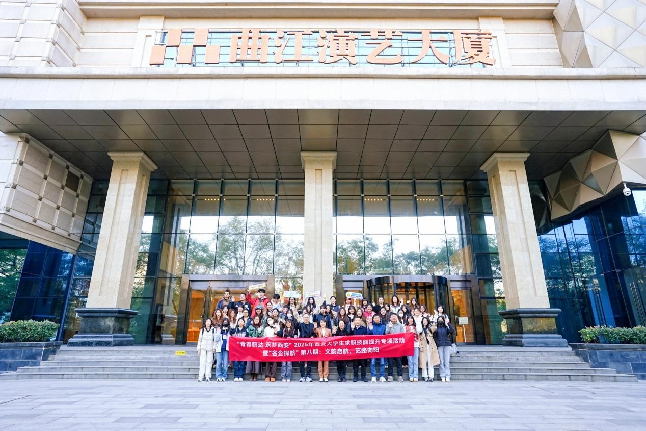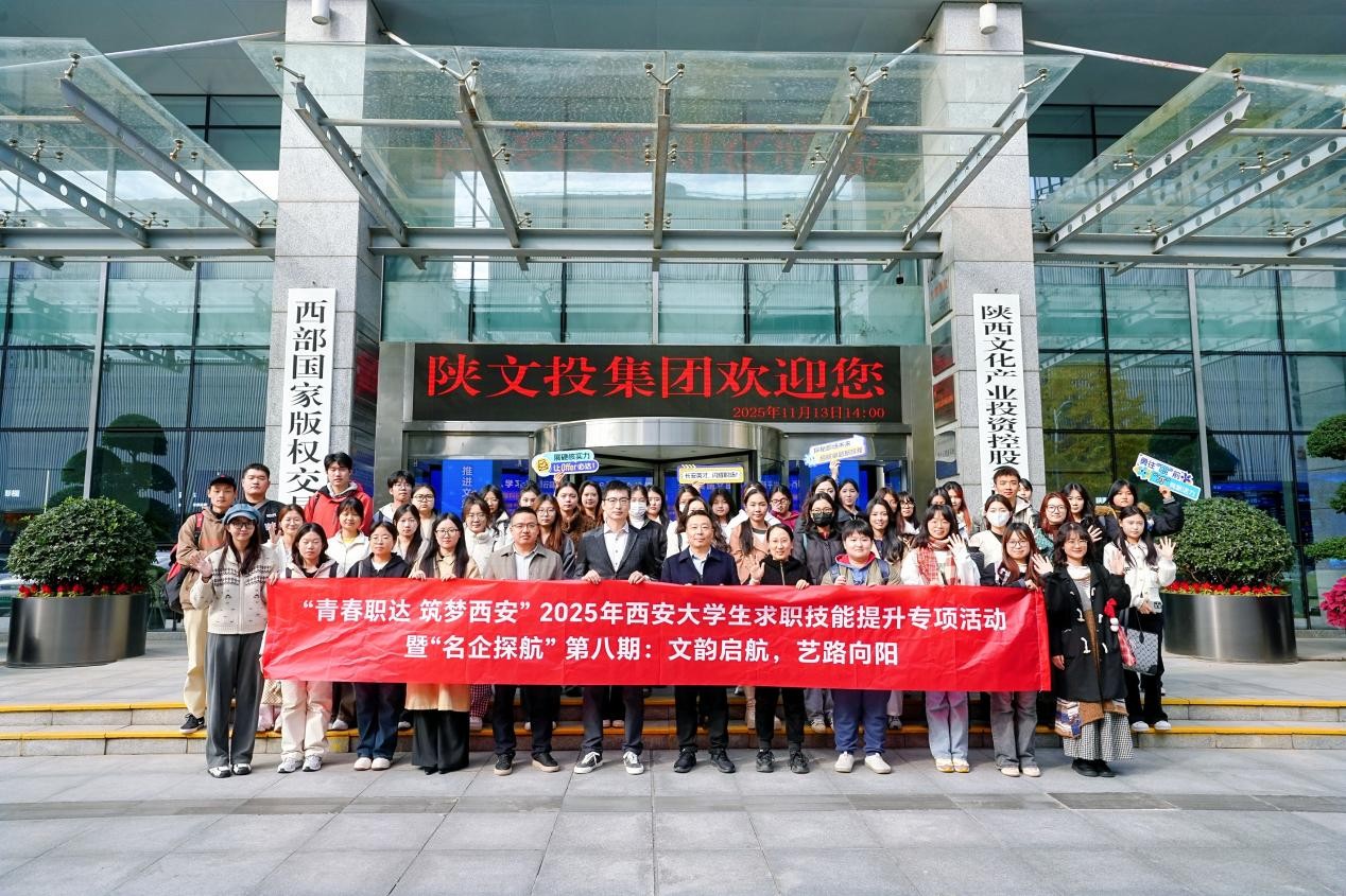 招聘会当天,数字艺术学院十余名学生代表还参与了2025年西安大学生求职技能提升专项活动暨“名企探航”行动,深度探访西安演艺集团、陕文投集团及旗下单位,沉浸式感受陕西深厚文化资源的现代转化与产业化运营。