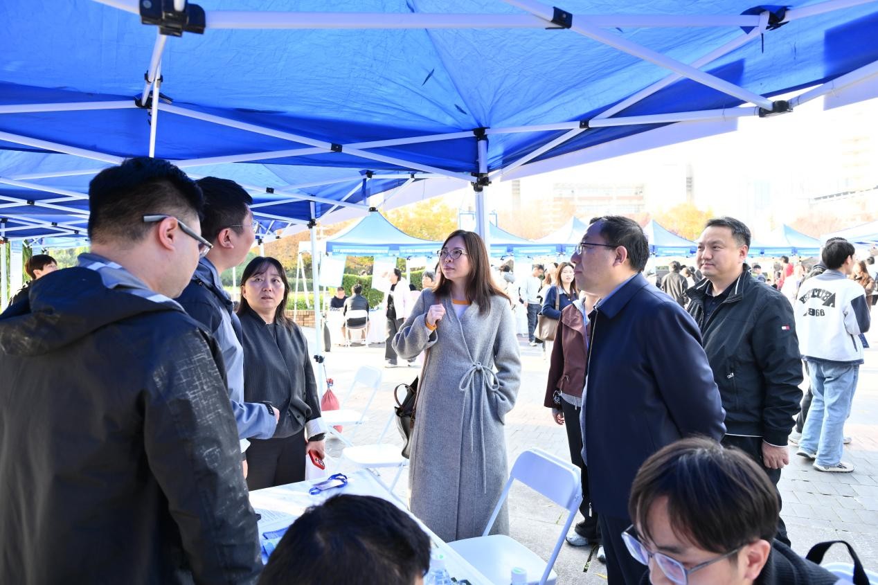 本网讯(通讯员 高妍)11月13日,由陕西省人力资源和社会保障厅指导,中国西安人才市场管理委员会办公室主办,我校承办的“乐业陕西‘就’在三秦”职引未来-2025年全国城市联合招聘高校毕业生秋季专场招聘会暨“宏志助航计划”2026届毕业生秋季就业洽谈会(综合类第四场)在长安校区西区大学生活动中心广场举办。陕西省人才交流服务中心副主任武艳,校党委副书记郑大远现场调研用人单位需求,了解学生求职进展与困难。招生就业处、各学院就业工作负责人、毕业班辅导员主动对接用人单位人才需求,现场推荐毕业生。