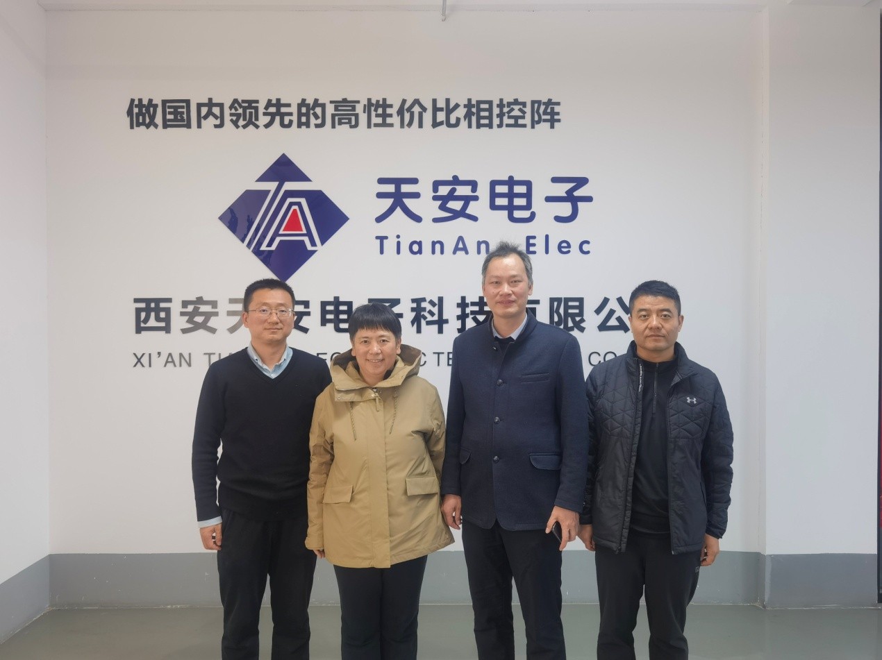 巩红介绍了学校在电磁场方向的学科建设、科研进展及成果转化等方面的情况。她指出,天安电子作为从学校走出来的科技创新企业,其核心产品相控阵天线的研发及产业化具有鲜明的“西邮基因”,是学校科研成果向企业转化、服务产业发展的生动实践。学校将持续推进有组织的科技成果转化,深化产教融合与科教融汇,进一步加强与天安电子的交流协作,将人才培养融入产业链发展进程,促进资源共享,携手实现校企高质量发展。