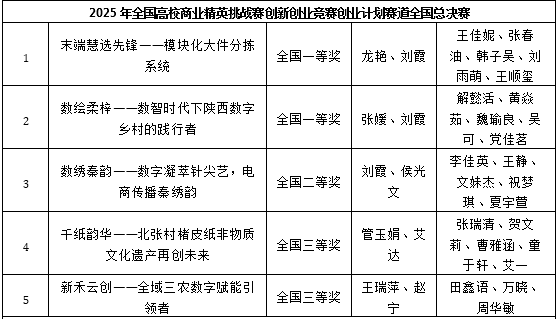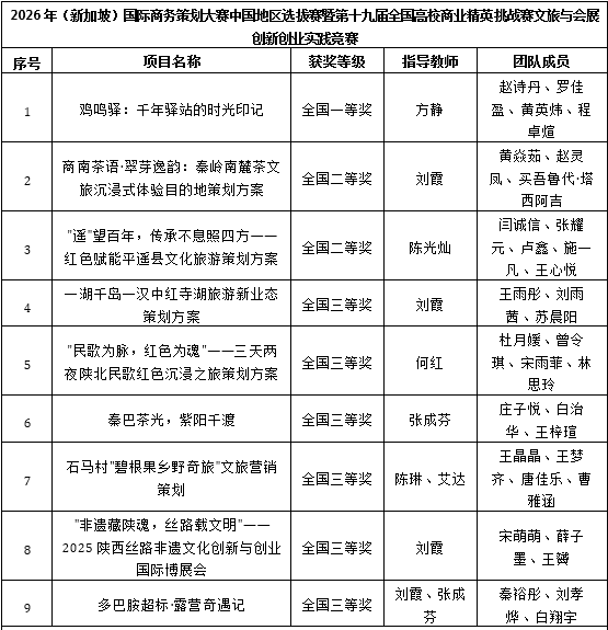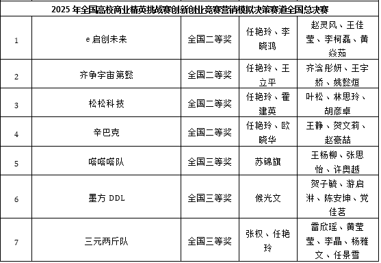 本网讯(通讯员 刘霞)近日,2025年全国高校商业精英挑战赛各赛道赛事相继举行。我校学生在文旅与会展创新创业实践竞赛、创新创业竞赛创业计划赛道、创新创业竞赛营销模拟决策赛道中共获全国一等奖3项、二等奖7项、三等奖11项。