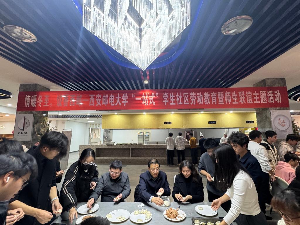 本网讯(通讯员 李赵伦)12月21日下午,学校“情暖冬至,饺香西邮”劳动教育暨师生联谊主题活动在长安校区西区旭日苑餐厅二楼举行。校党委副书记郑大远出席活动,各学院教师、辅导员及学生代表参加活动。
