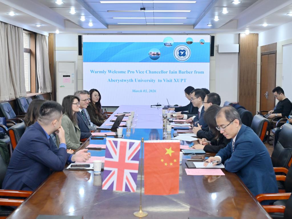 卢光跃在致辞中对伊恩·巴伯一行的到访表示欢迎,详细介绍了我校的办学历史、学科特色、专业优势、人才培养成效及国际化办学成果。他指出,西安邮电大学是中国在西北地区部署的唯一一所邮电通信类高校,长期以来,学校紧扣国家和地方发展需求,突出信息科学技术特色,深耕信息、通信、人工智能等核心领域,先后与10多个国家和地区的40余所大学及学术机构建立了稳定的合作关系,在对外交流合作方面取得了丰硕成果。亚伯大学办学历史悠久、办学特色鲜明,两校在学科发展方向上高度契合,具备坚实的合作基础和广阔的合作前景。他希望双方以此次访问为契机,进一步深化合作办学,在人才培养、科学研究等领域开展全方位、深层次的合作。