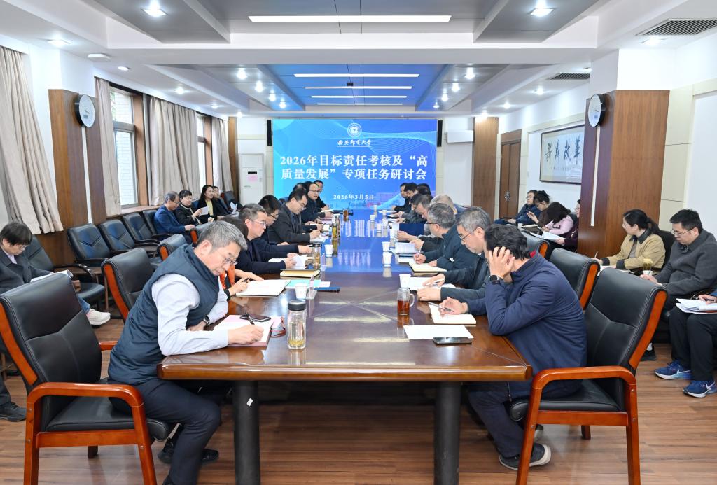 会上,校领导结合各自分管领域,就2026年高质量发展专项任务落实、强化统筹协同、破解重点难点等提出具体意见和工作要求;人事处及各牵头部门负责人详细介绍了2026年目标责任考核方案及“高质量发展”专项任务的制订思路、框架内容、具体指标、实施路径与责任分工;与会人员围绕任务设定科学性、考核标准合理性、推进举措可行性等展开讨论,提出了建设性的意见建议。