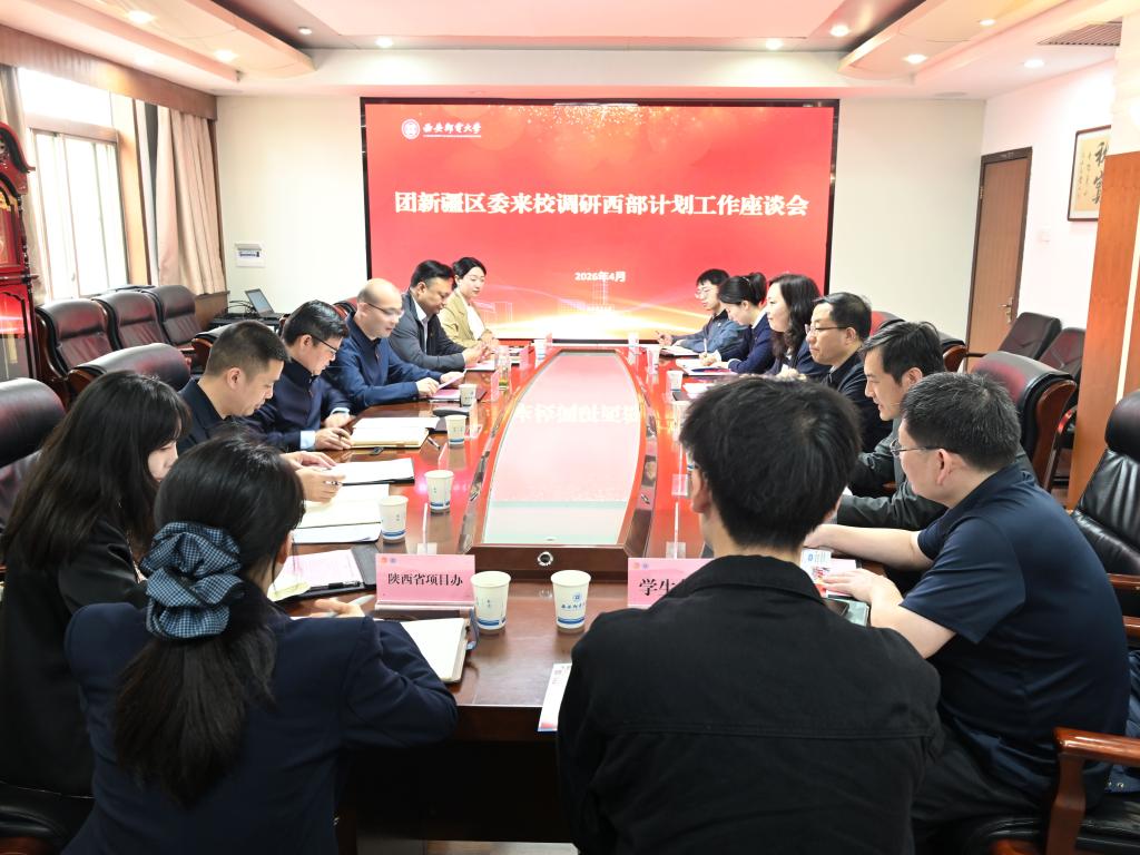本网讯(通讯员 严凰)4月15日上午,团新疆区委书记艾山江·艾塔洪、团陕西省委副书记刘洋一行来校调研西部计划新疆地区招募工作,并就深化校地人才合作开展座谈交流。校党委副书记郑大远出席座谈会并致辞,团陕西省委副书记刘洋主持座谈会。团新疆区委、团陕西省委相关部门负责人,我校团委、部分学院负责人及师生代表参加座谈。