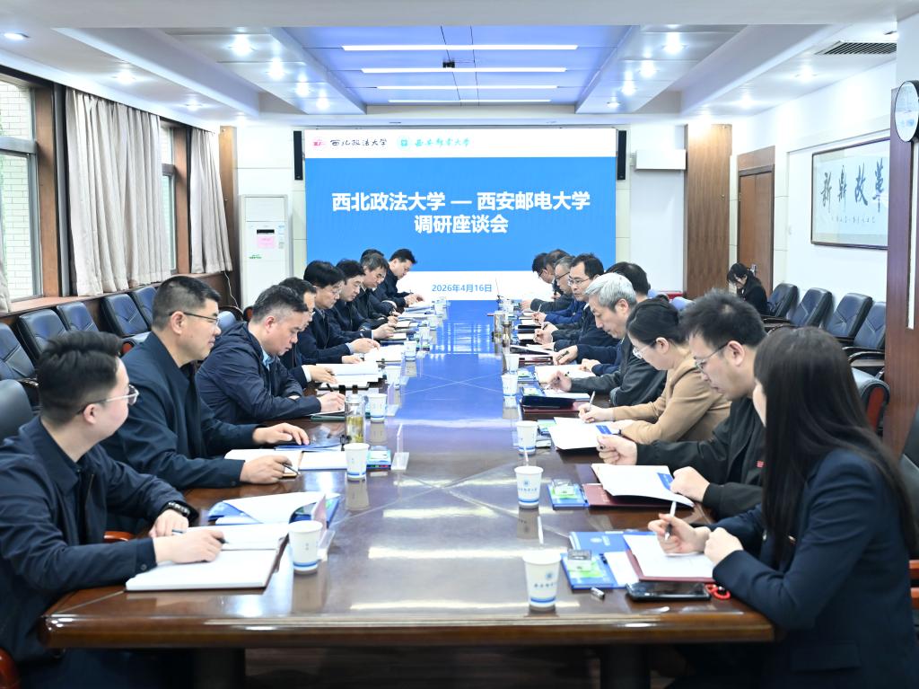 本网讯(通讯员 张星渊)4月16日上午,西北政法大学校长范九利、副校长孙昊亮一行来校调研座谈。我校校长卢光跃主持会议并讲话,副校长崔江涛出席会议,双方相关职能部门和学院负责人参加座谈。