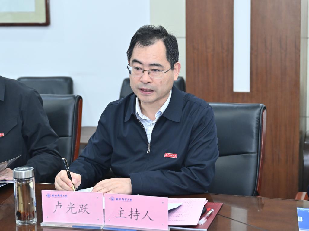 卢光跃代表学校对范九利一行的到访表示欢迎,并简要介绍了学校的发展历程、学科布局及办学特色。他指出,西安邮电大学与西北政法大学同为省属高水平大学,地处长安,区位相邻、优势互补,在“长安联盟”框架下已形成良好的合作基础。近年来,双方依托各自学科特色,积极推进“法律+人工智能”“人工智能+法律”复合型人才培养,协同探索学科交叉融合新路径,取得了阶段性成效。希望以此次调研为契机,进一步深化合作内涵,在人才培养模式创新、科研协同攻关、平台共建共享等方面取得更加务实的成果。