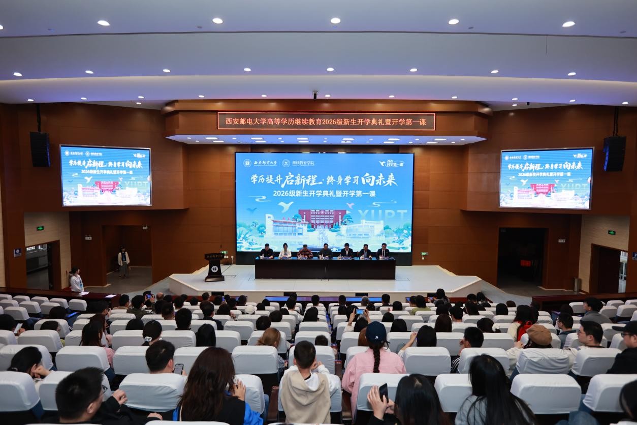 本网讯(通讯员 雷娟)4月19日上午,我校在长安校区东区逸夫报告厅举行2026级高等学历继续教育新生开学典礼暨开学第一课。副校长韩江卫出席典礼并致辞,优秀校友代表、陕西通信技师学院(陕西邮政人才发展中心)副院长李斌,教师代表、我校理学院副教授张金牛和经济与管理学院学工办主任曹江,继续教育学院全体教职工、校外教学点负责人代表及全国各教学点450余名新生代表通过线上线下形式参加典礼。开学典礼由我校继续教育学院院长李天龙主持。