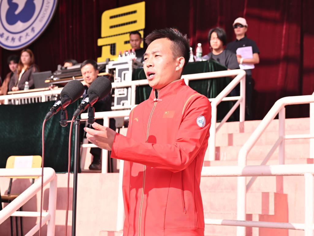 卢光跃发表开幕致辞,向精心筹备本届运动会的工作人员表示诚挚的谢意,向积极参加本次运动会的广大运动员、全体教练员及裁判员致以亲切的问候和良好的祝愿,向观看大会直播、长期关心学校发展的各界朋友和广大校友表示衷心的感谢!他指出,学校深入落实党和国家关于体育工作的战略部署,将做好体育工作作为落实教育强国、教育强省战略的实际行动,以更高站位、更实举措、更优质效推动体育育人,让教育和体育“双向奔赴”。过去的一年,学校深入落实立德树人根本任务,坚持五育并举,修订学生体质健康标准测试实施方案,针对性地优化体育课程教学活动,加强学生体质精准干预,体质健康测试达标率达96.96%。深入挖掘校园体育特色,打造“一院一品”“一校多品”校园体育文化品牌矩阵,形成了包括定向越野在内的系列品牌运动项目。举办师生校友欢乐跑、荧光夜跑、燃脂广场舞、趣味运动会等各类赛事活动1300余场次,累计参与师生超5万人次。学校教师在第十五届全运会群众赛事定向项目中斩获金牌,学生代表队荣获国家级冠军4项、省级冠军16项,擦亮了体育育人的西邮品牌。希望全体师生将赛场与学场同道,让拼搏与追梦同心,在运动中锤炼体魄、磨砺意志、涵养格局,让体育精神内化为深耕专业、探索前沿、科技报国的力量与底气,在建设教育强国的时代赛道上,跑出西邮人的加速度。