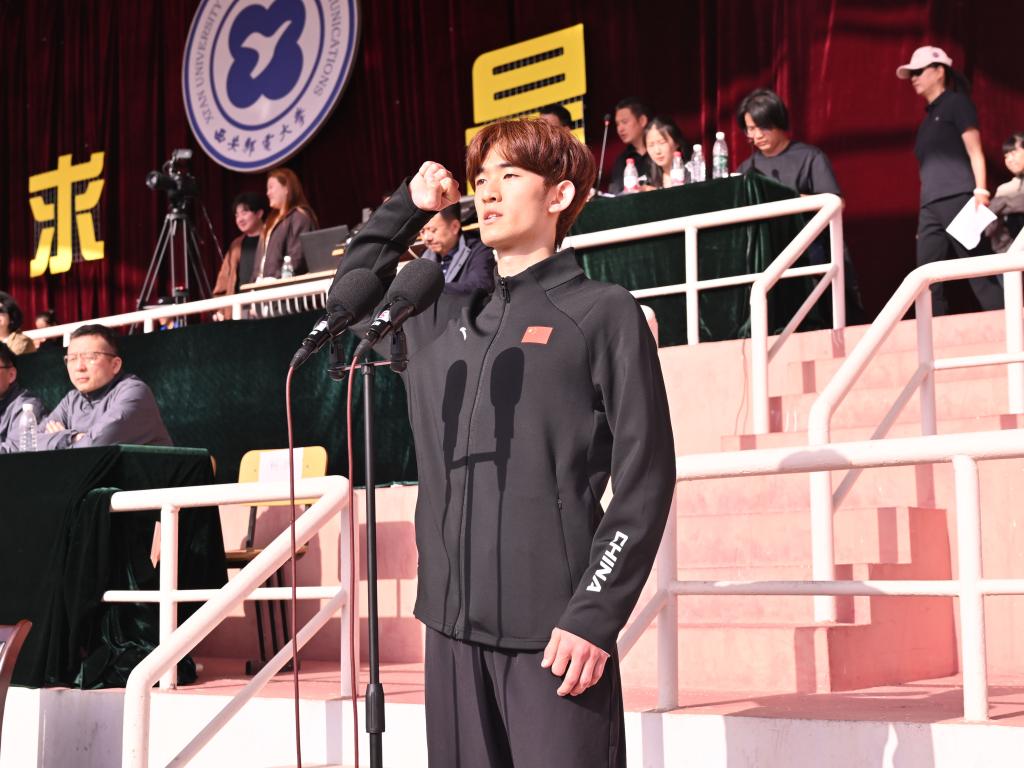 马宁宣布西安邮电大学第三十二届运动会开幕。