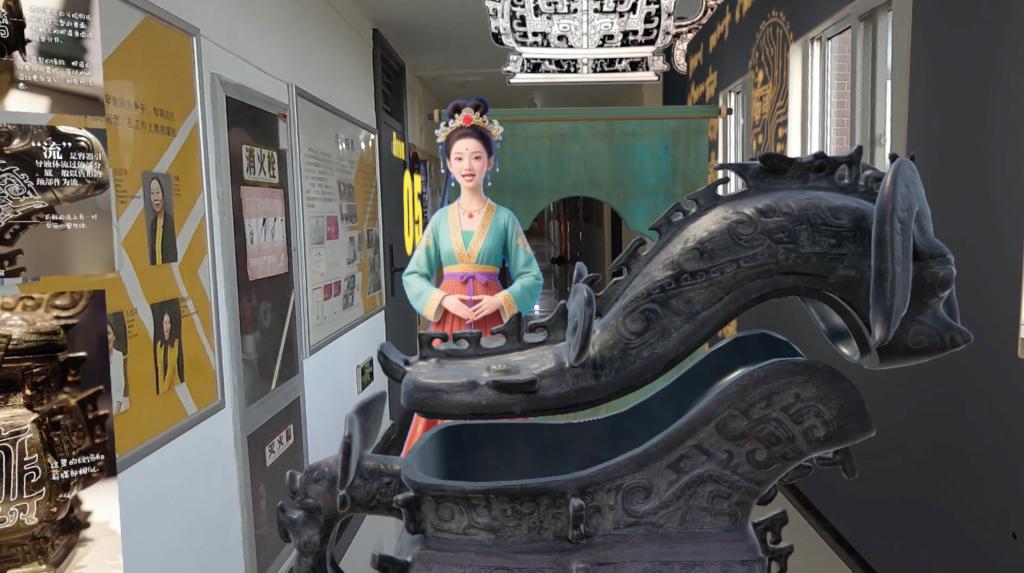 师生同心,筑就思政育人新阵地。“MR文物走廊”由学院青年教师申一鸣带领学生共建,从创意到落地,各环节均体现师生协同育人成果。师生围绕“增强文化传承吸引力 提升思政教育穿透力”展开研讨,针对传统文物静态陈列难引发共鸣的痛点,结合MR(混合现实)技术发展机遇,提出“用科技打破时空,让学生走进历史”的构想,既探索新技术应用,更将“文化自信”转化为可感知体验。创作中,师生分工协作,教师精选西周“何尊”等兼具历史价值与教育意义的文物,助力学生理解“中国”二字渊源、厚植家国情怀;学生主动承担资料搜集、创意设计及技术实操,融入青春视角。经思想碰撞与实践打磨,“MR文物走廊”不仅正式落地,师生也更加深化“文化传承者”的身份认知。