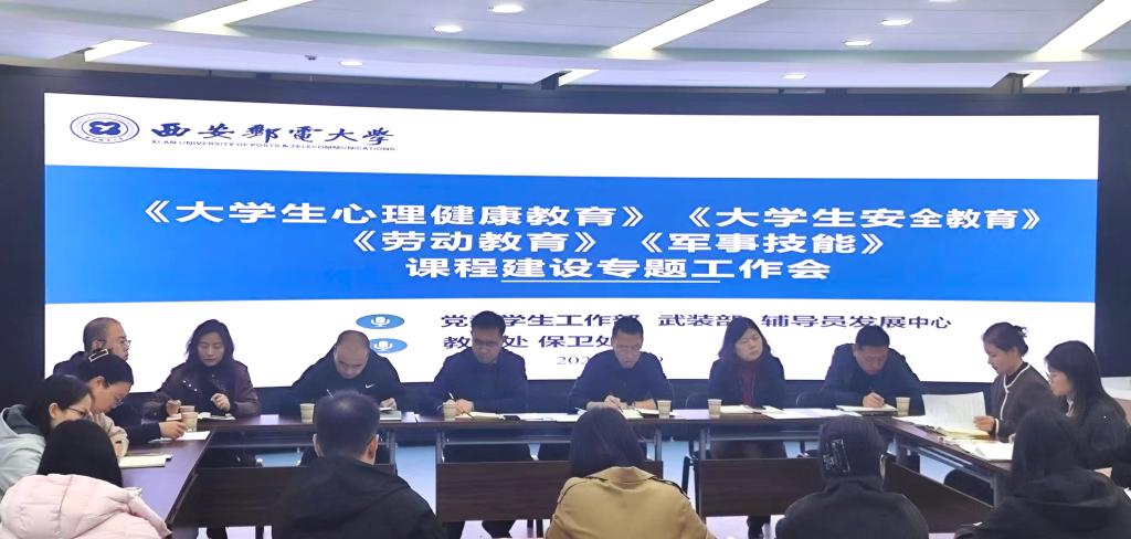 本网讯(通讯员 赵格静)10月29日上午,党委学生工作部、武装部、辅导员发展中心联合教务处、保卫处在长安校区西区“一站式”学生社区服务大厅召开《大学生心理健康教育》《大学生安全教育》《劳动教育》《军事技能》课程建设专题工作会。党委学生工作部、武装部、辅导员发展中心、教务处、保卫处负责人,课程建设及授课教师代表参会。会议由党委学生工作部部长、武装部部长、辅导员发展中心主任高向鹏主持。