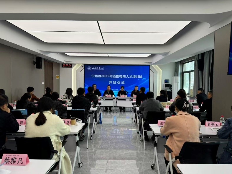 本网讯(通讯员 陈蒙蒙)11月4日上午,为破解宁强县本土电商专业人才短缺瓶颈,推动县域特色产业与数字经济深度融合,宁强县2025年直播电商人才培训班开班仪式在我校雁塔校区信息大厦504教室举行。继续教育学院副院长刘晶、宁强县电商办主任李映超及来自宁强县各电商企业的近30名学员参加开班仪式。