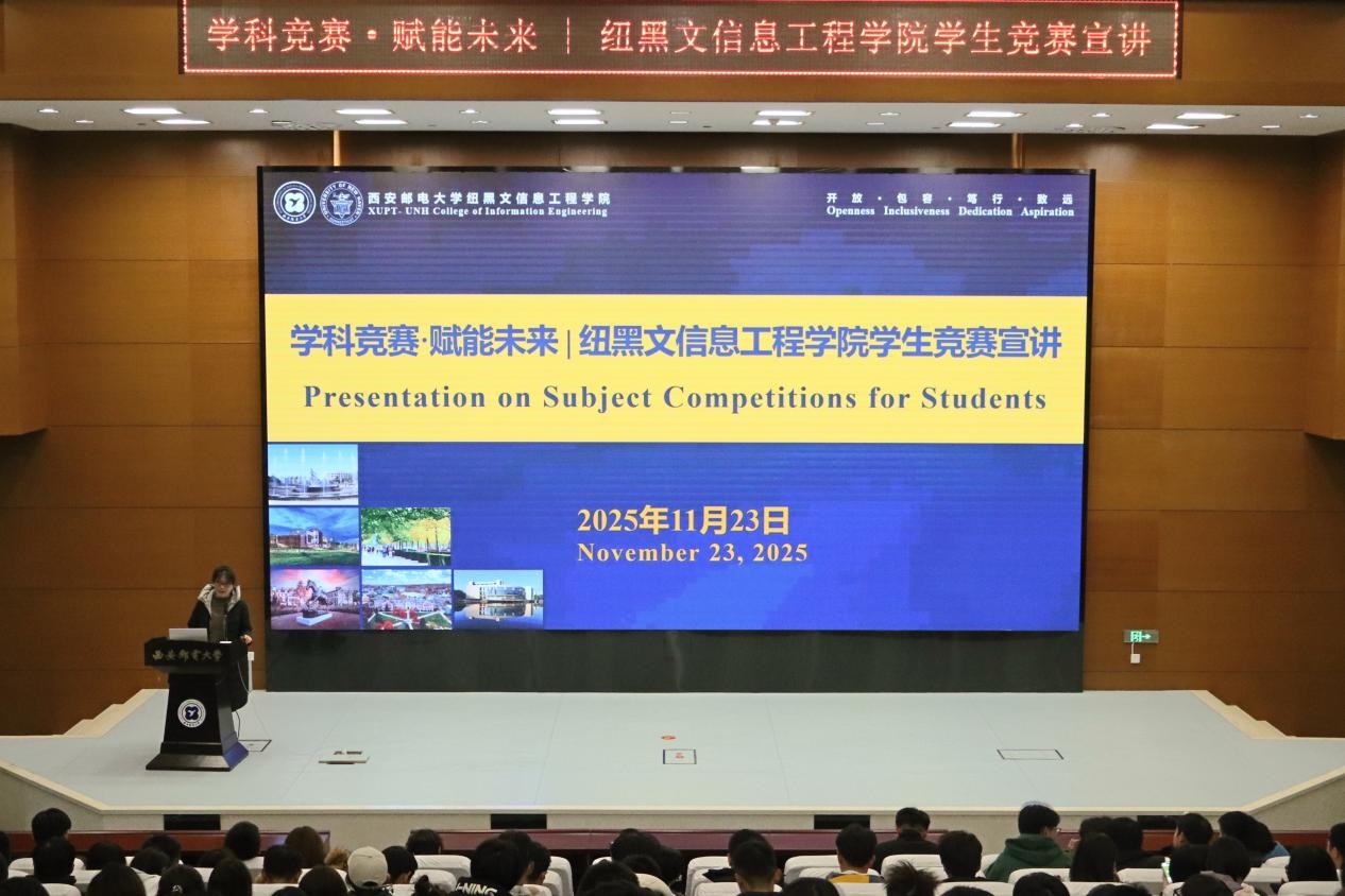 本网讯(通讯员 楚瑞)11月23日,国际信息工程学院在长安校区逸夫报告厅举办“学科竞赛·赋能未来”专题宣讲活动。通信与信息工程学院、计算机学院、人工智能学院、自动化学院、国际信息工程学院竞赛负责教师分别作专题宣讲,国际信息工程学院2025级全体学生参加宣讲会。学院副院长廖延娜主持活动。