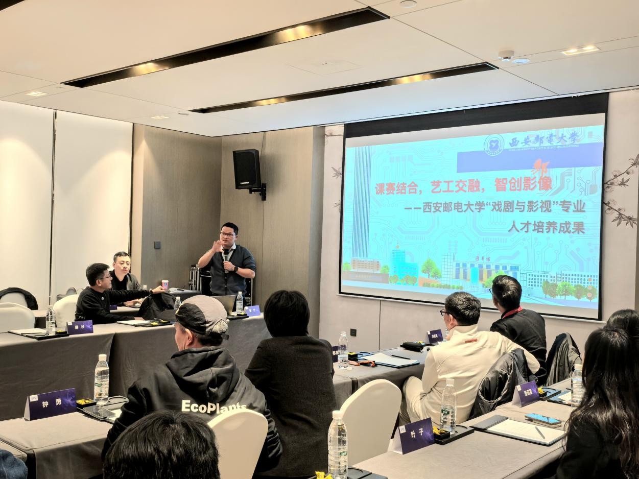 谢群以《课赛结合、艺工交融、智创影像》为题,对学院戏剧与影视专业人才培养情况进行介绍。他强调学院始终将虚拟制作、人工智能等前沿影像技术作为戏剧与影视专业人才培养的核心方向,不仅依托智能媒体陕西省高等学校重点实验室深耕虚拟制作技术研发与教学,还通过建设Blackmagic Design西北高校首个授权达芬奇调色认证中心、数字人研究中心、自主研发AIGC“云墨AI”设计平台等,构建了覆盖技术研发、实践应用、赛事检验的全链条培养体系。