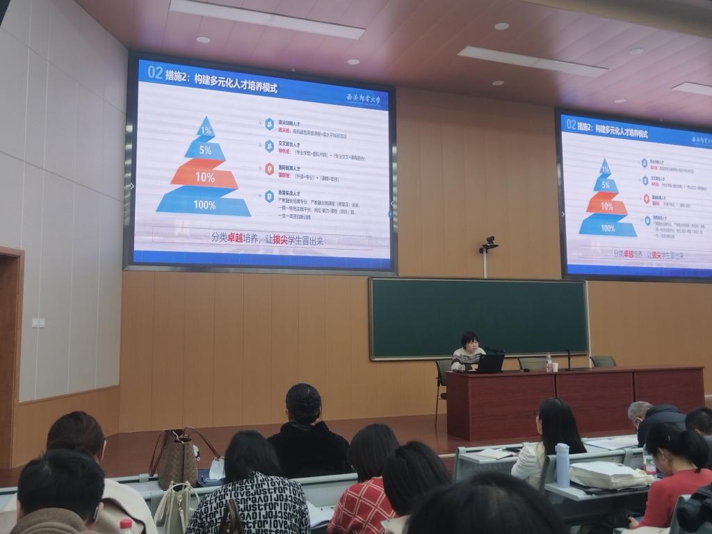 报告中,赵婕着重介绍了学校以“尊重专业兴趣、培育学业特长、支持多元发展”的理念,将“兴趣驱动”作为专业选择的核心导向,全面打破转专业的“转出限制”,依托办学优势特色,主动服务国家战略与经济社会发展,紧密对接产业链和创新链,优化专业结构,加大特色优势专业建设,构建转专业通道与“培养-就业-发展”全链条联动机制。学校逐渐完善相关制度文件,进一步细化转专业组织管理、申请条件、工作程序及毕业资格审核等核心内容,为人才培养模式创新提供坚实制度保障。