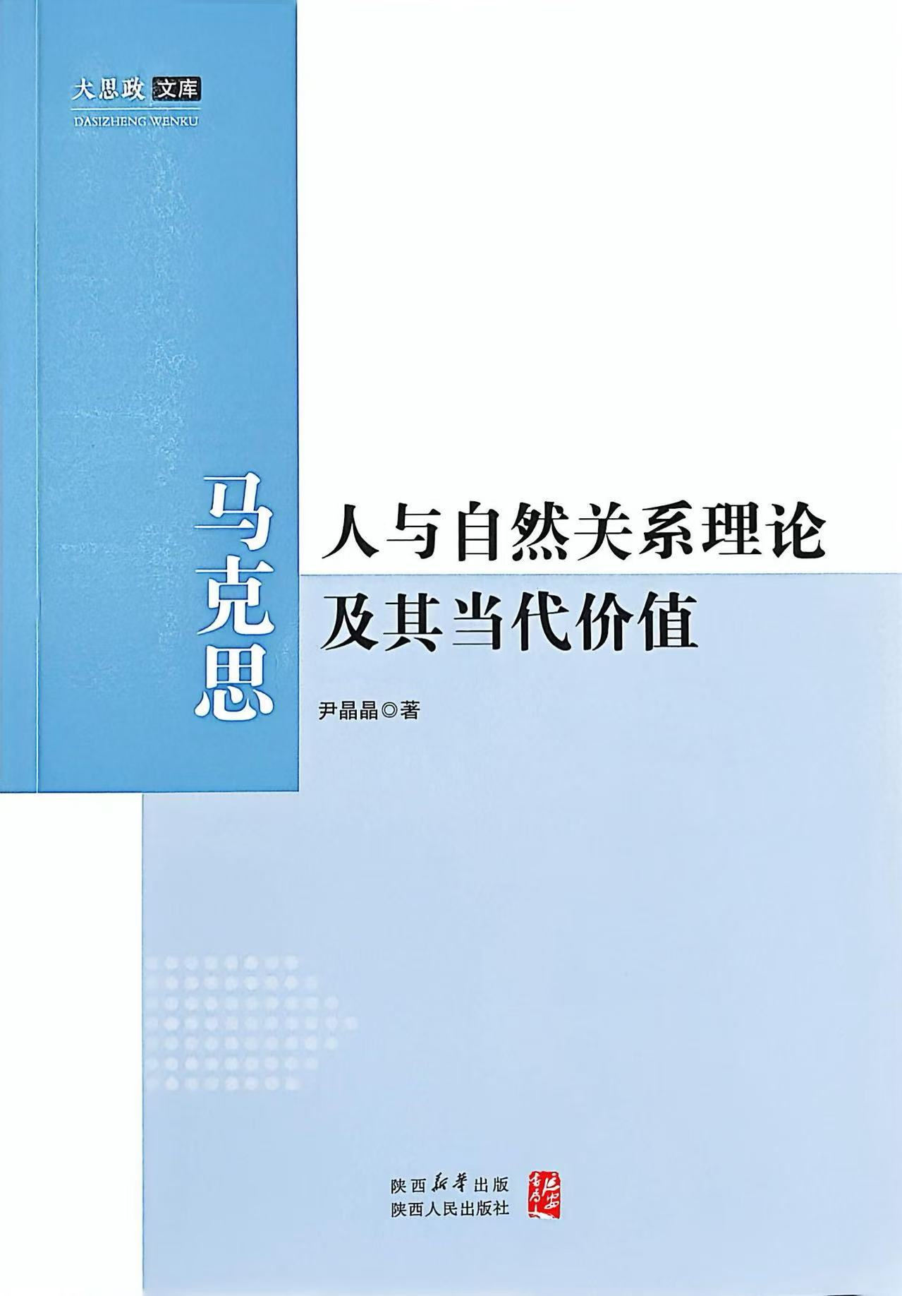 本网讯(通讯员 于文杰)近日,马克思主义学院尹晶晶博士的著作《马克思人与自然关系理论及其当代价值》由陕西人民出版社出版发行。