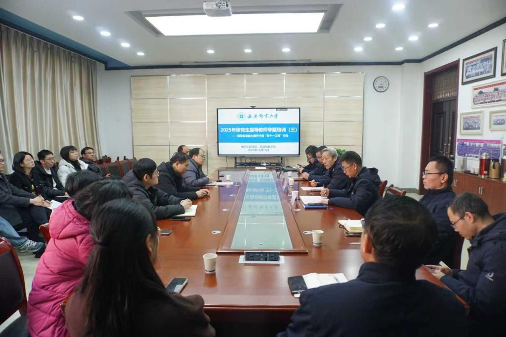 本网讯(通讯员 郭小姝)近日,电子工程学院、集成电路学院举办2025年研究生指导教师专题培训会。邀请西北工业大学张鼎文教授作专题分享,我校研究生院院长、学科建设办公室主任王军选,学院党委书记张宁及全体研究生指导教师参会。培训会由学院副院长邓军勇主持。