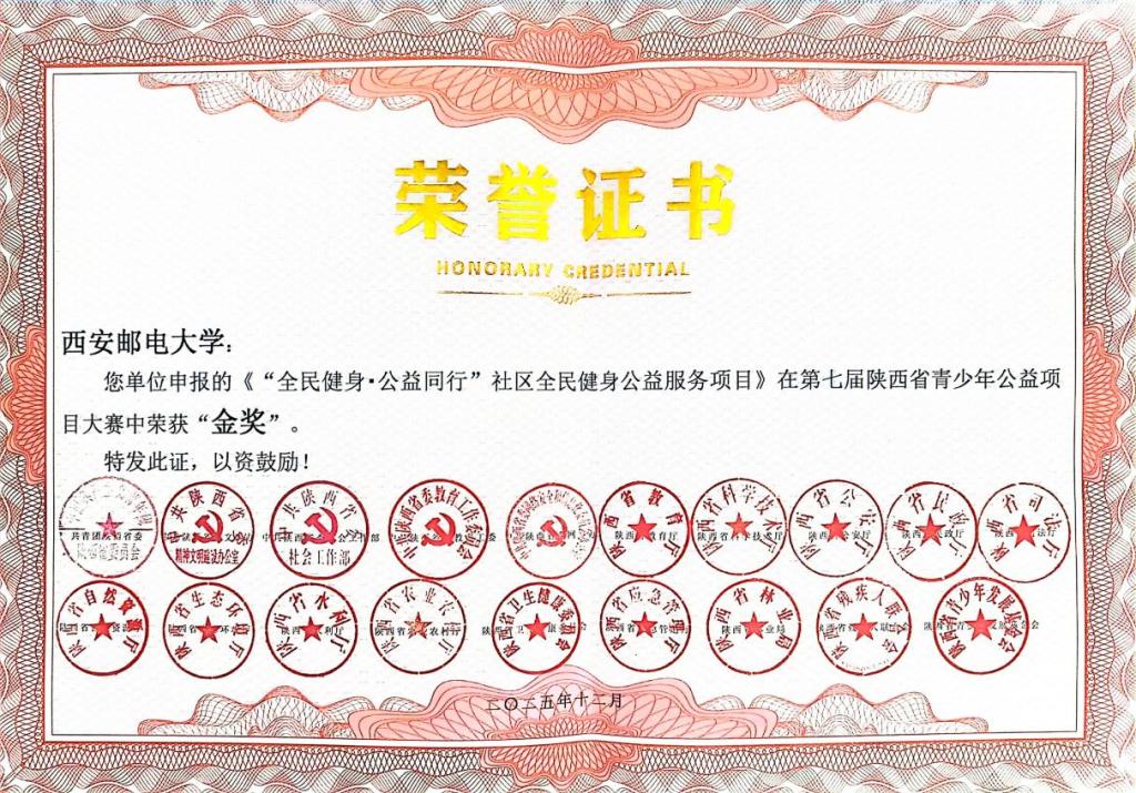 本网讯(通讯员 邓博文 晋金才)近日,由共青团陕西省委、中共陕西省委文明办、中共陕西省委社会工作部、中共陕西省委教育工委等20家单位共同主办的第七届陕西省青少年公益项目大赛落幕。我校推荐的《“全民健身·公益同行”社区全民健身公益服务项目》荣获金奖,《劳动实践赋能自然教育融合创新公益项目》荣获银奖。