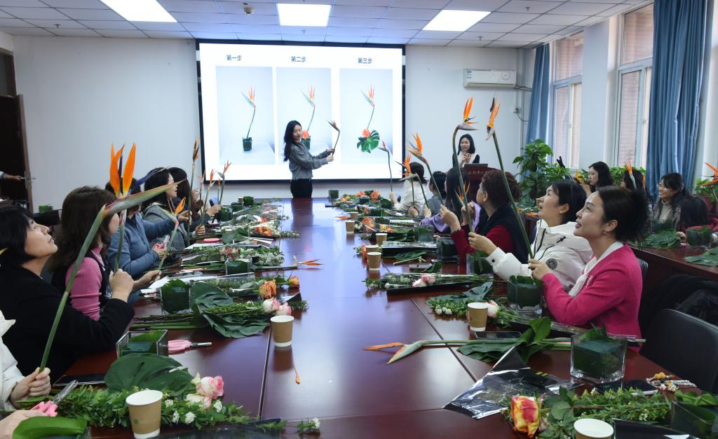 本网讯(通讯员 于文杰)3月4日下午,为进一步丰富女教职工精神文化生活,校工会与马克思主义学院联合举办“巧手插花韵 初心映芳华”插花体验活动。各部门、各学院负责人代表及女教职工代表共同参与活动。