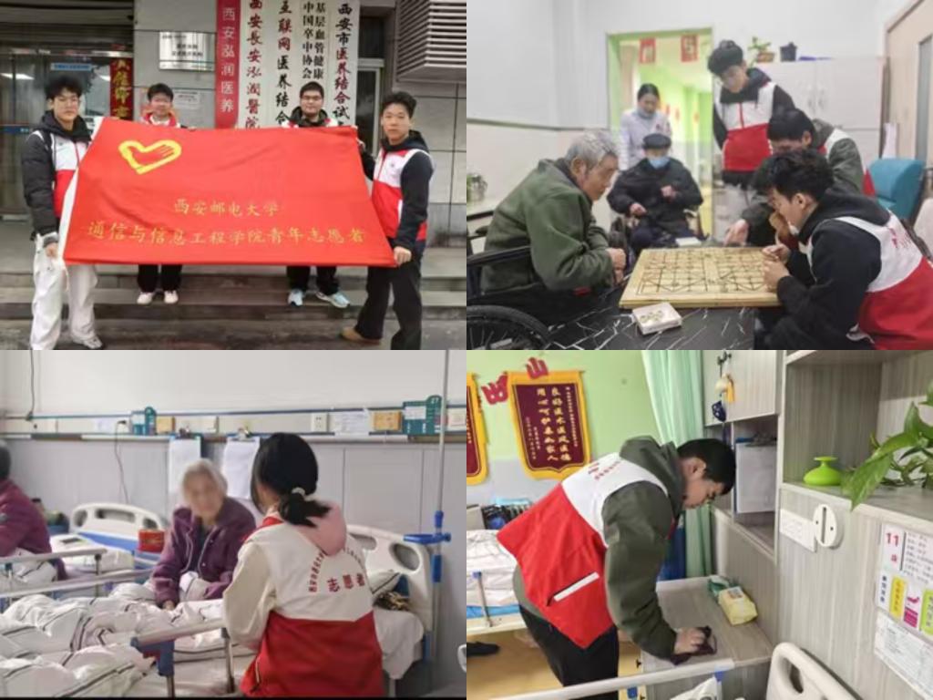 服务社会,传递温暖。3月7日,学院“信小益”志愿服务党支部、青年志愿者协会走进西安市长安泓润医院,开展助老暖心服务。志愿者们分工协作、各尽所能,对医院公共区域进行细致清扫与消毒,陪住院老人聊天谈心、对弈消遣、修剪指甲,以贴心服务传递敬老爱老的温情暖意,以青春力量践行雷锋精神。