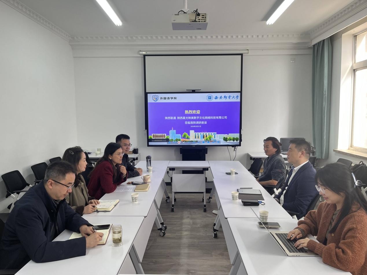 本网讯(通讯员 郑文浩)3月31日下午,陕西联通要客事业部总经理温长山、陕西星光映美数字文化网络科技有限公司总经理师向阳一行来访我校外国语学院。外国语学院院长徐丽华、副院长张茜、副处级组织员刘凯元及骨干教师代表参加座谈交流。